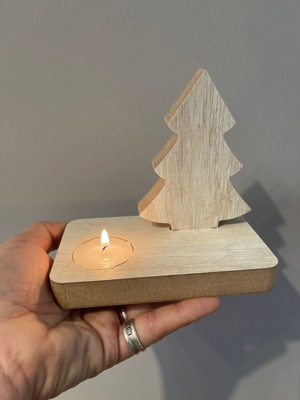 Base porta vela Pino en madera MDF enchapado en melamina (INCLUYE VELITA)