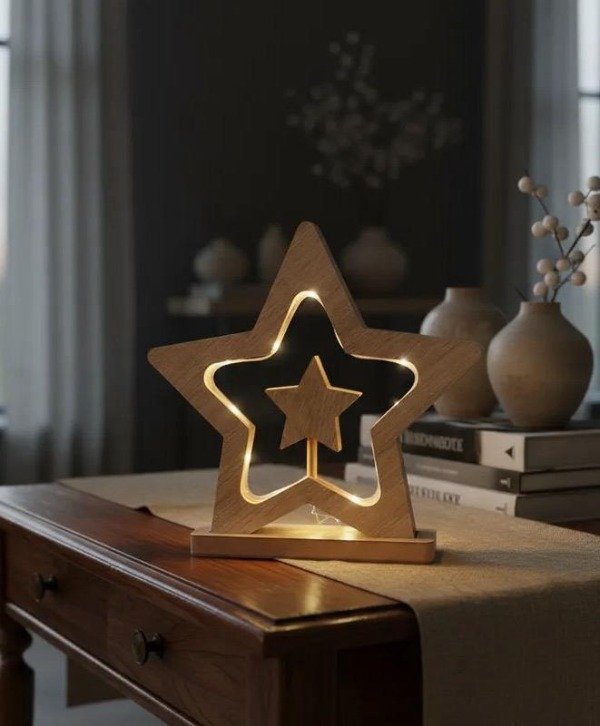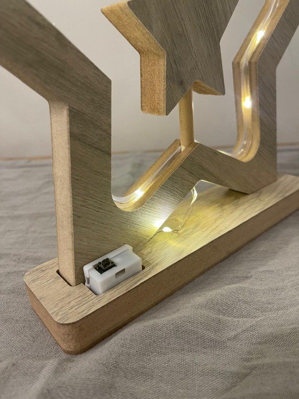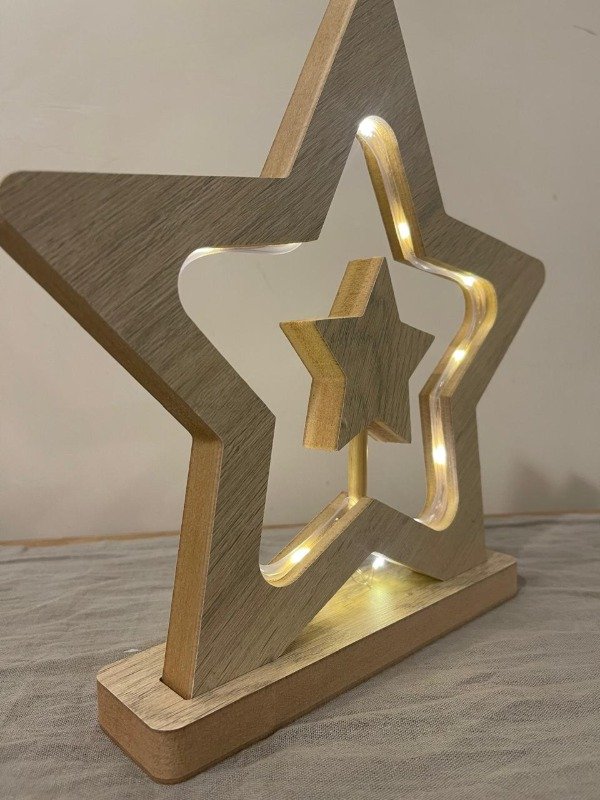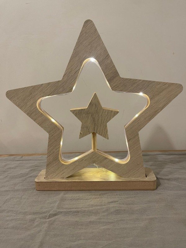 Estrella con luz en madera MDF enchapada en Melamina incluye pila tipo botón!