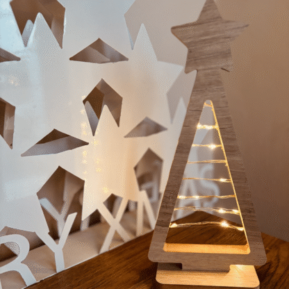 Pino con luz en madera MDF enchapada en Melamina incluye pila tipo botón!