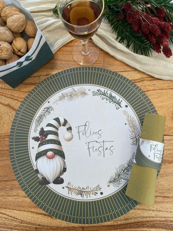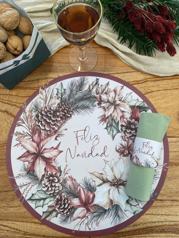 Set x 25 platos de sitio de papel + 25 fajitas porta servilleta + 25 Servilletas