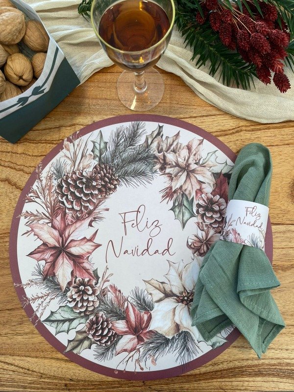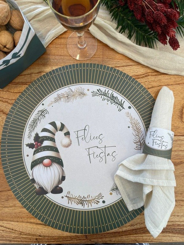 Set x 12 platos de sitio de papel + 12 fajitas porta servilleta