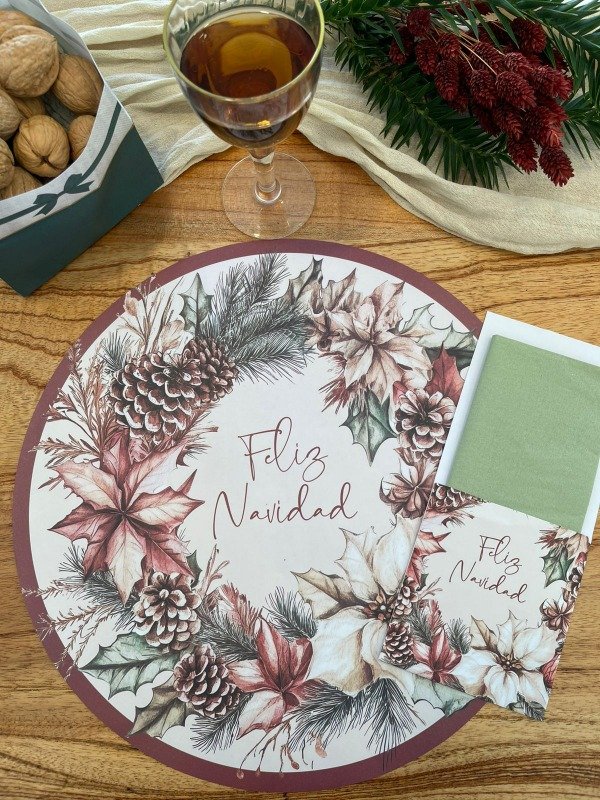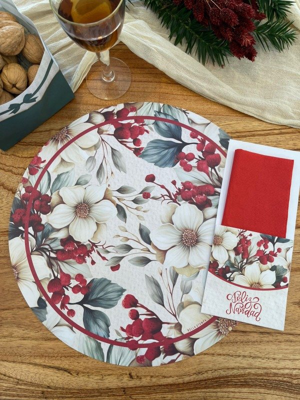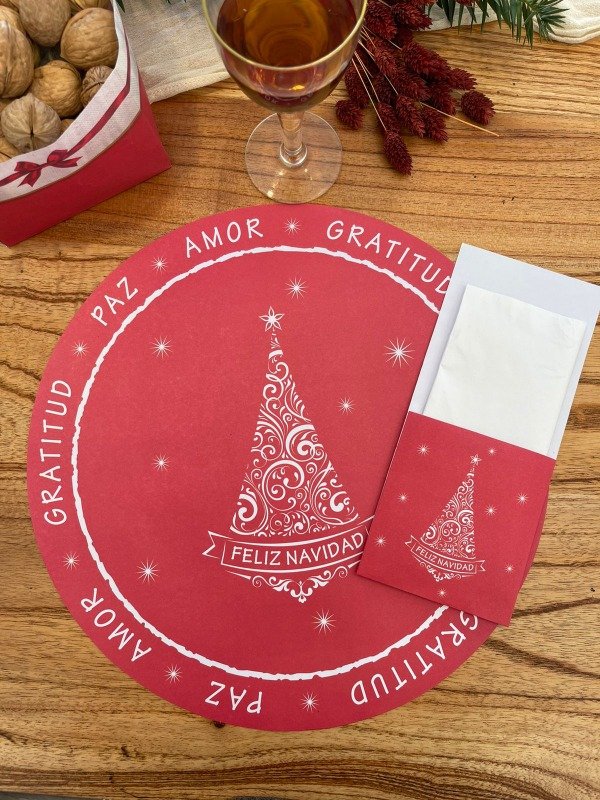 Set Platos de Sitio Papel + Porta Cubiertos + Servilletas X 25 Unid. Navidad