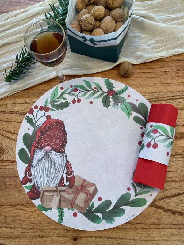 Set Platos De Sitio Papel + Porta Servilletas X 50 Uni. Navidad