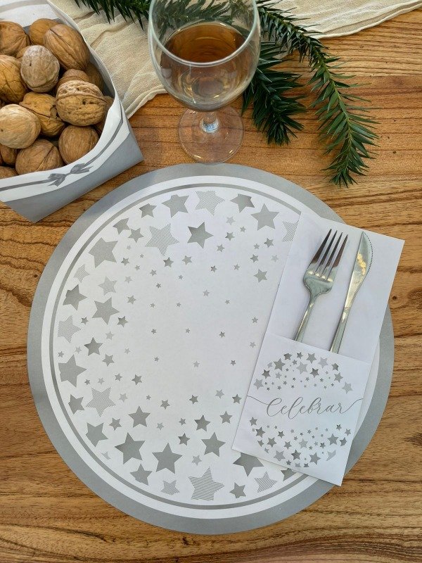 Platos De Sitio De Papel + Porta Cubiertos X 100 Descartables