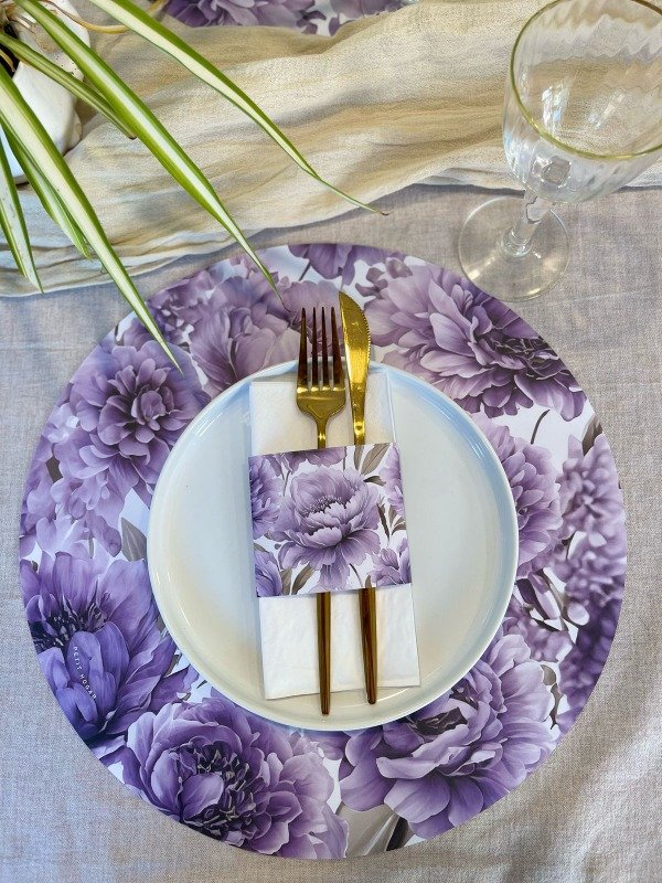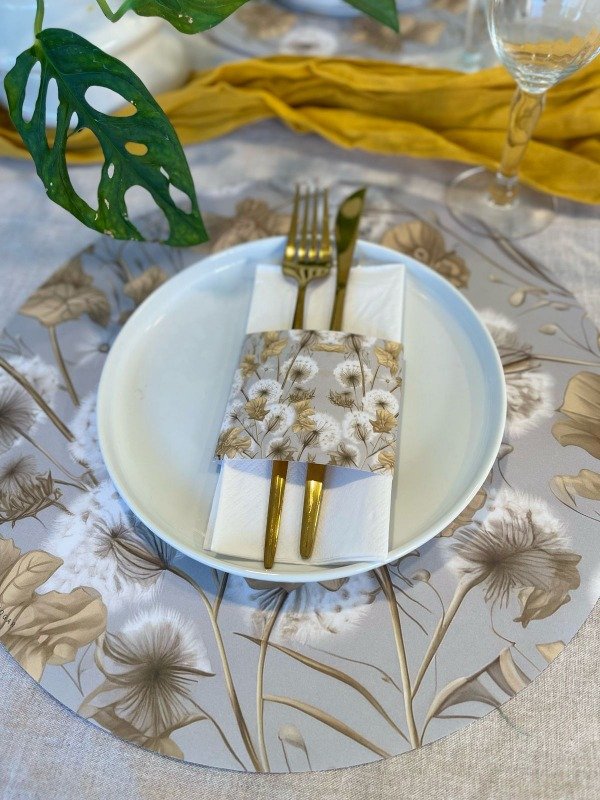 El set contiene 50 Platos de Sitio de papel descartables + 50 Porta servilletas