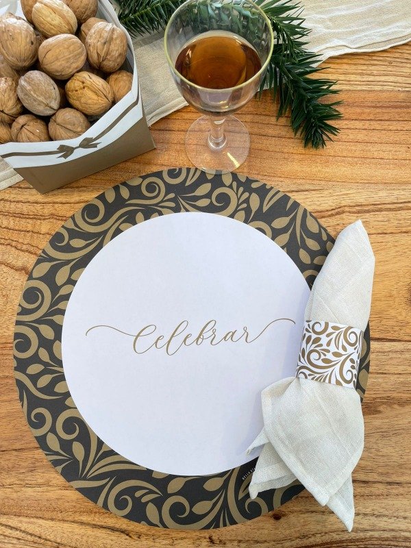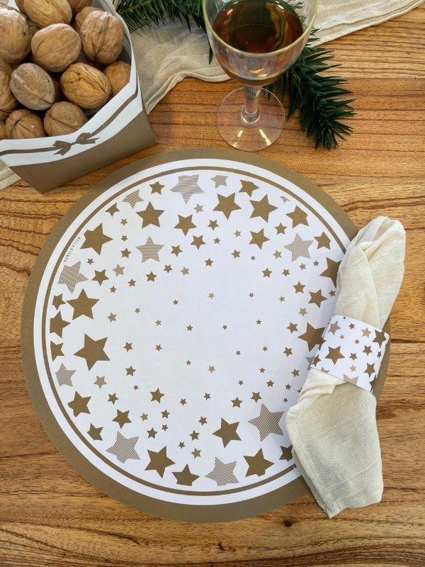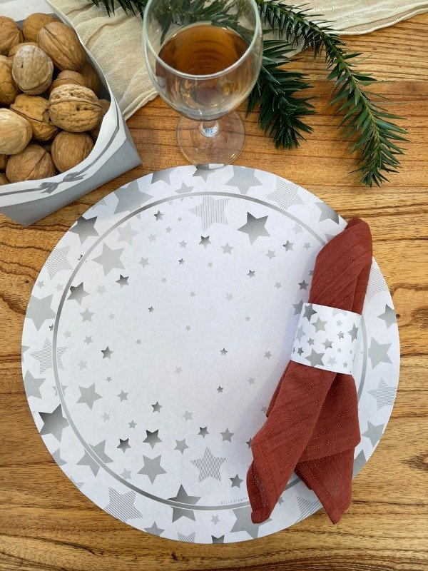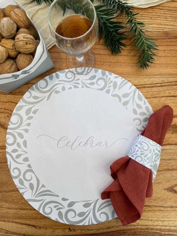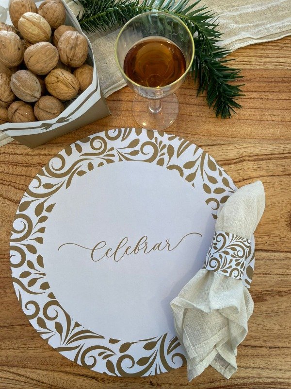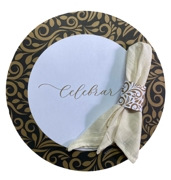 Set x 12 platos de sitio de papel + 12 fajitas porta servilleta